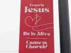 The banners read, ‘Trust in Jesus, he is alive, come to church,’ and feature the council’s official logo.